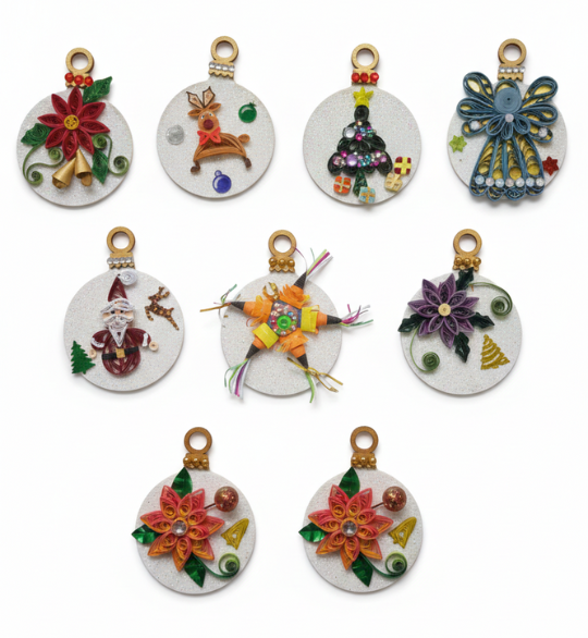 Base de madera de 7.5 cm de diámetro decoradas con diversas figuras de navidad.