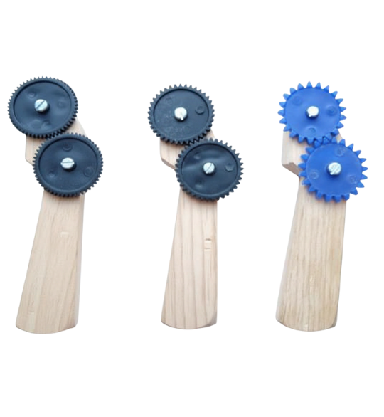 Con engranes para corrugar papel filigrana tamaño chico, mediano y grande.